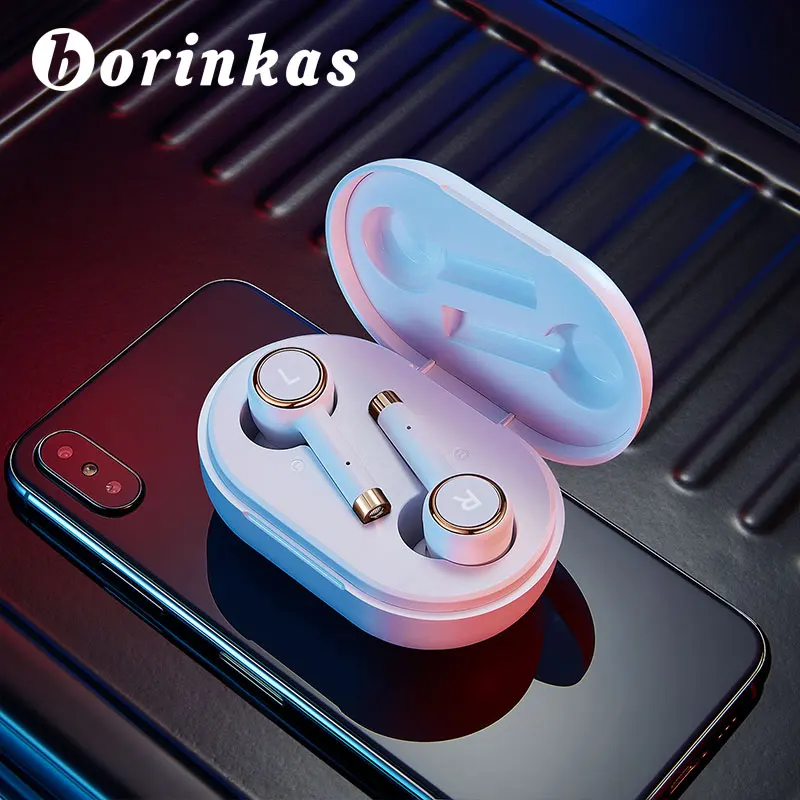 Borinkas 2020 New Long Battery HD Stereo TWS Bluetooth Earphones Phone Control Wireless Headphones With Dual Mic Noise Isolation