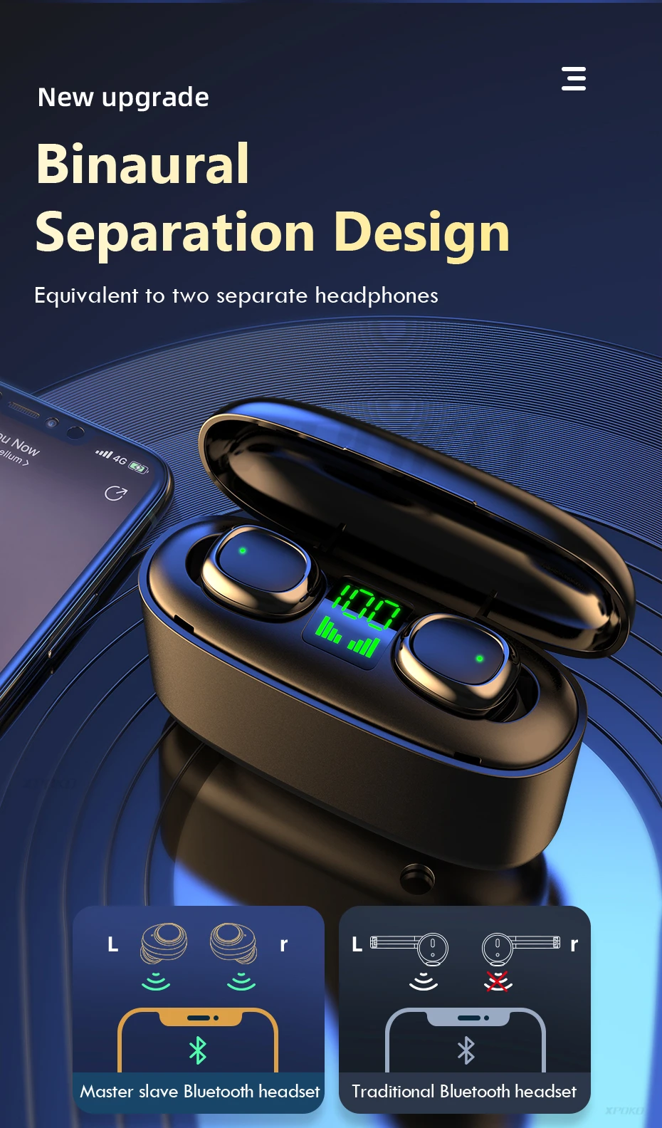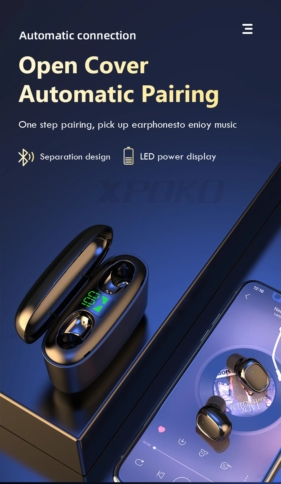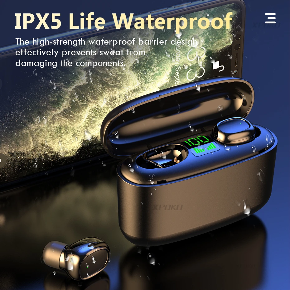 XPOKO Wireless Bluetooth Earphone Headphones With 3000mAh Charging Box HIFI TWS Wireless Earphones Bluetooth 5.0 With Microphone