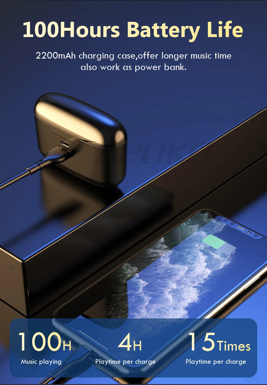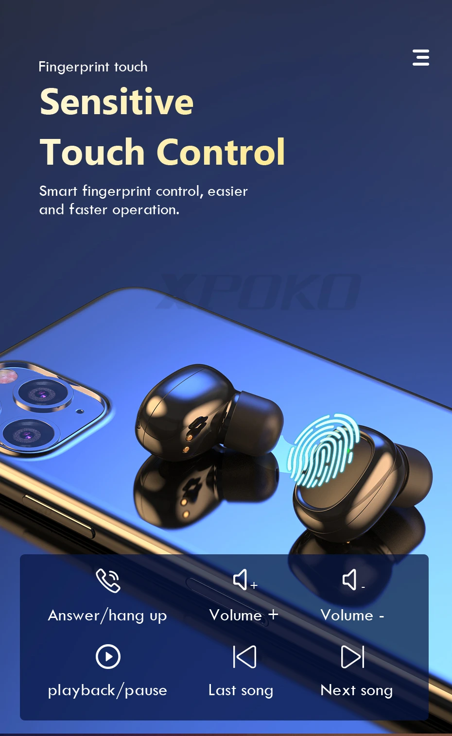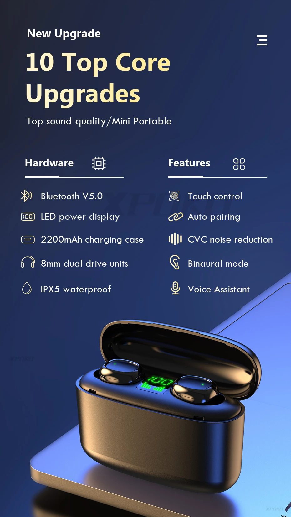 XPOKO Wireless Earphones Bluetooth 5.0 Touch Control Bluetooth Headphones With Mic Noise Cancelling Headset 400mAh Charging Case