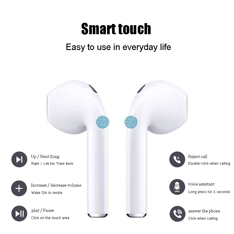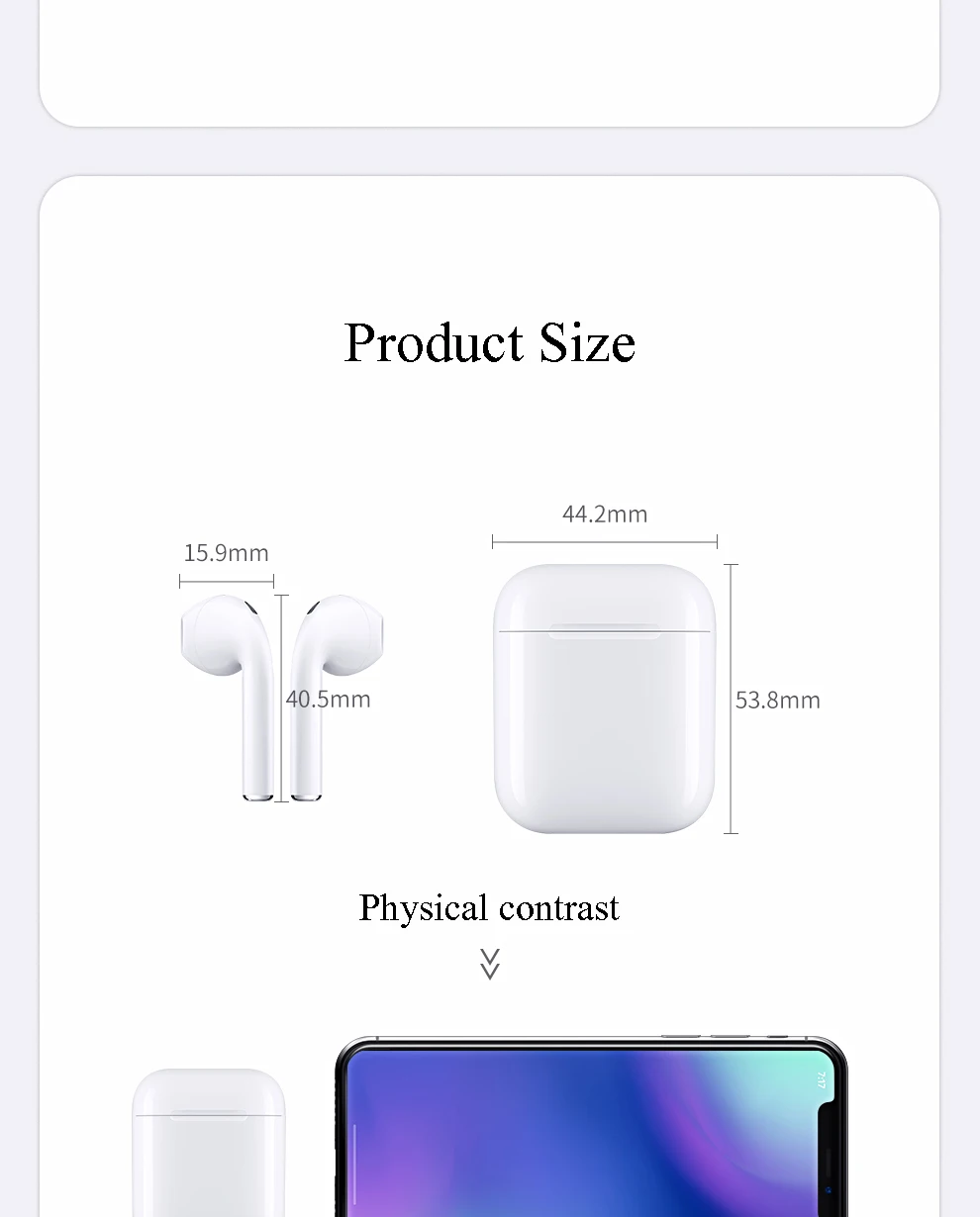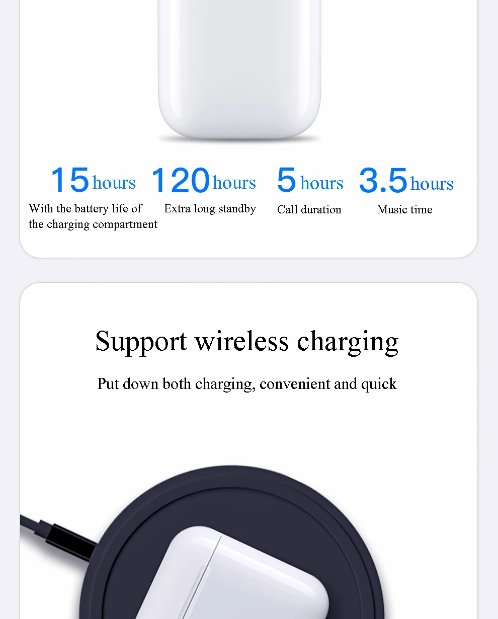 Original i9000 Max TWS Air 1:1 Earbuds Wireless Bluetooth Earphone Mini Wireless Sport Headsets Headphones Support iOS/Android If you want to see more pictures of the product, feel free to contact us. Please bear in mind that this version does not have the volume control function. After we have received feedback from our customers, we realized that in practice it’s not feasible. We have decided to improve sound quality, so that we can insure customers our sound quality is better than others. The features of the i9000 Max TWS are the following: 1. Separate use for either left or right earphone, without any disconnections or audio cuts2. Wireless charging3. 1:1 Replica size4. Tap control5. Enhanced bass and enhanced audio quality6. Automatically turns power on. 7. Automatically turns power off. 8. Binaural calls.9. Music time of 3 to 4 hours.10. Compatible with mobile.11. Compatible with all mobile phones that have Bluetooth. Android, iOS, Microsoft, etc.12. Correct indicators for battery level. 100% accurate for the three different batteries,but not really true.it will change batteries show every time you contect.13. Ability to use GPS (Find my iPhone).14. Renaming the product. Please be aware that the GPS function is only available for iOS. Please be aware that all tws earphone the Battery display is not ture,This is a technology that can't be cracked at present.All sellers' earphones are the same problem . If they tell you, it can show the real power, please don't believe it.They tell lie. This product includes the following:- One pair of Bluetooth earphones. - Charging box for the Bluetooth earphones.- Charging cable for the charging box Although there are many sellers that are selling TWS, we can assure our customers that we have the greatest sound quality and bass. On top of that we have exemplary customer service incase you have any inquiries regarding the product or tracking.