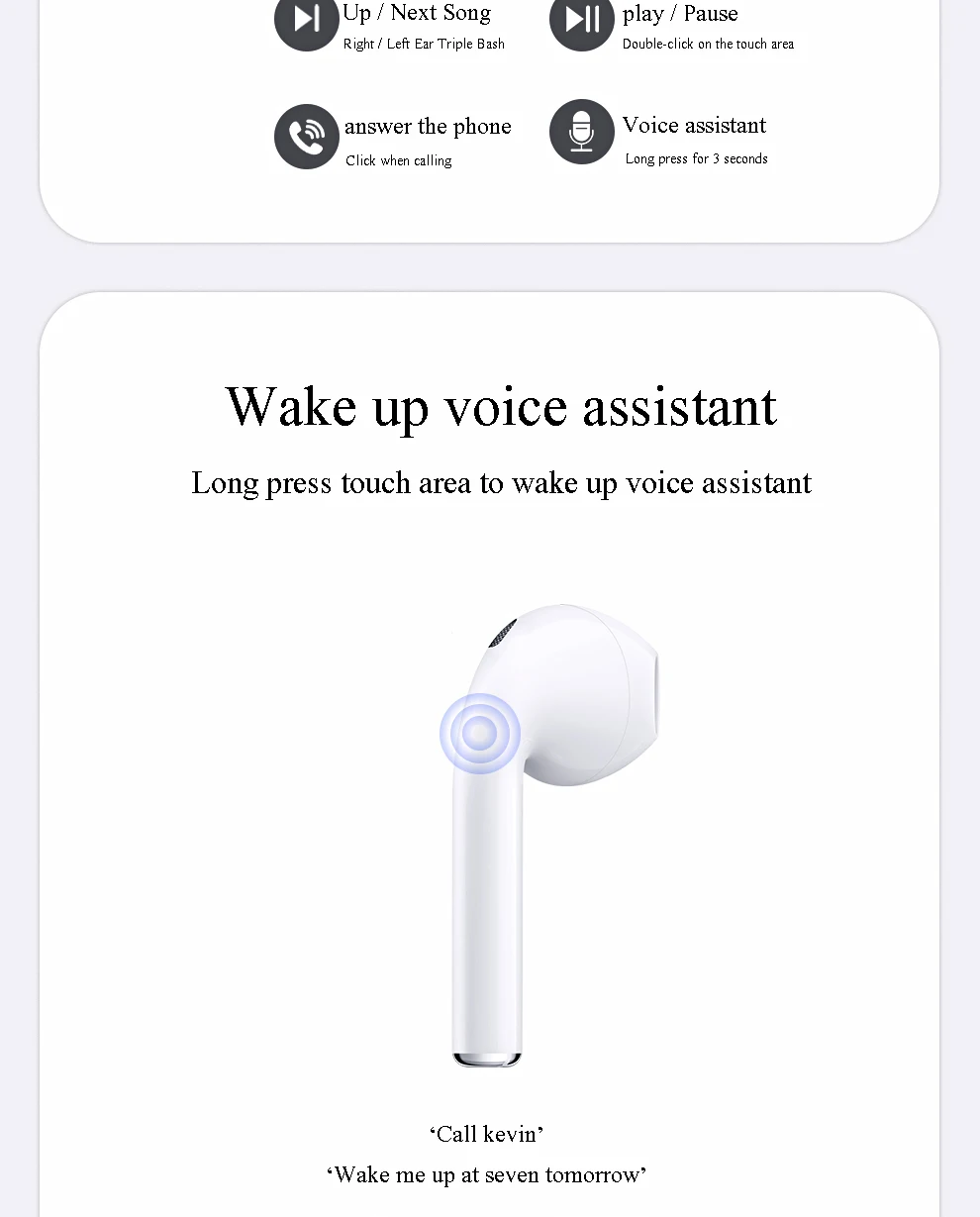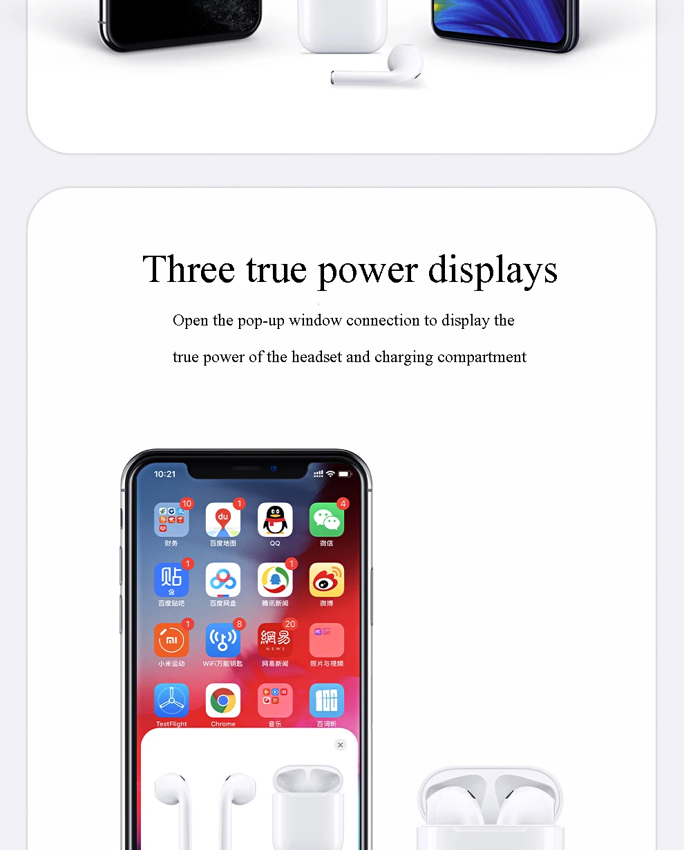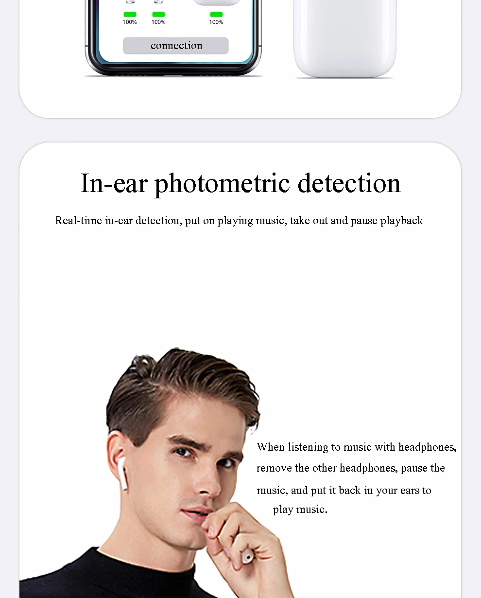 Original i9000 Max TWS Air 1:1 Earbuds Wireless Bluetooth Earphone Mini Wireless Sport Headsets Headphones Support iOS/Android If you want to see more pictures of the product, feel free to contact us. Please bear in mind that this version does not have the volume control function. After we have received feedback from our customers, we realized that in practice it’s not feasible. We have decided to improve sound quality, so that we can insure customers our sound quality is better than others. The features of the i9000 Max TWS are the following: 1. Separate use for either left or right earphone, without any disconnections or audio cuts2. Wireless charging3. 1:1 Replica size4. Tap control5. Enhanced bass and enhanced audio quality6. Automatically turns power on. 7. Automatically turns power off. 8. Binaural calls.9. Music time of 3 to 4 hours.10. Compatible with mobile.11. Compatible with all mobile phones that have Bluetooth. Android, iOS, Microsoft, etc.12. Correct indicators for battery level. 100% accurate for the three different batteries,but not really true.it will change batteries show every time you contect.13. Ability to use GPS (Find my iPhone).14. Renaming the product. Please be aware that the GPS function is only available for iOS. Please be aware that all tws earphone the Battery display is not ture,This is a technology that can't be cracked at present.All sellers' earphones are the same problem . If they tell you, it can show the real power, please don't believe it.They tell lie. This product includes the following:- One pair of Bluetooth earphones. - Charging box for the Bluetooth earphones.- Charging cable for the charging box Although there are many sellers that are selling TWS, we can assure our customers that we have the greatest sound quality and bass. On top of that we have exemplary customer service incase you have any inquiries regarding the product or tracking.