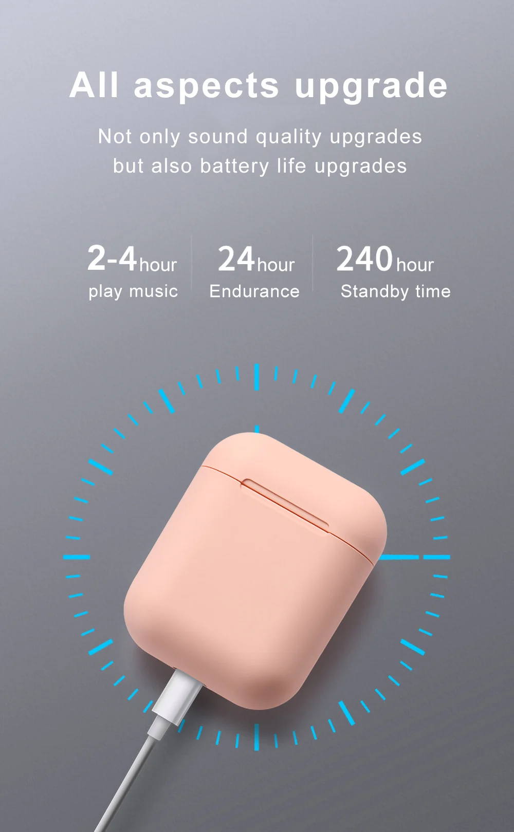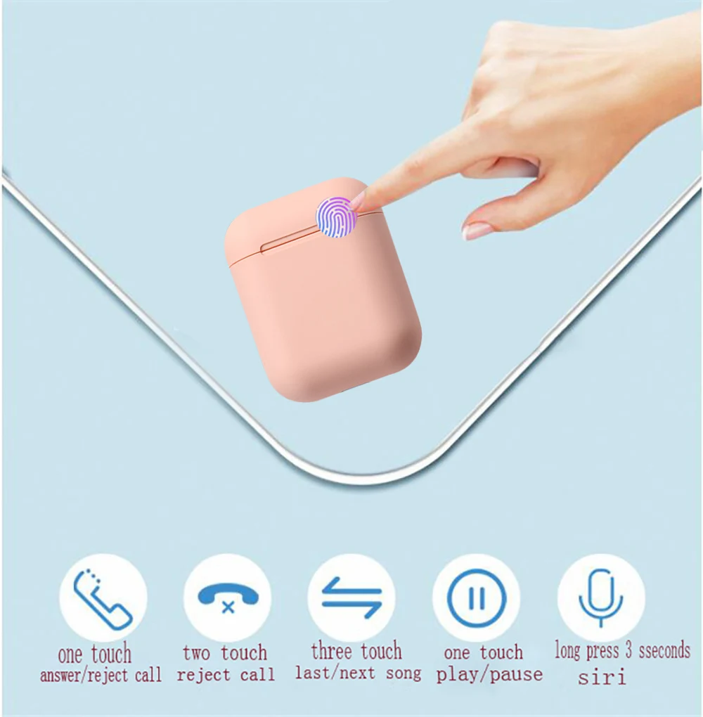 i12 tws Bluetooth Earphone Wireless Earbuds Hands free 3d Stereo surround sound Sport music Colorful Scrub feel