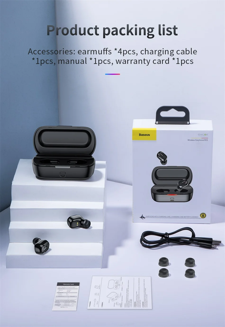 Baseus TWS 5.0 Bluetooth Earphone Wireless Headphones True Wireless Earbuds With Mic Handsfree In-Ear Headset For iPhone Xiaomi