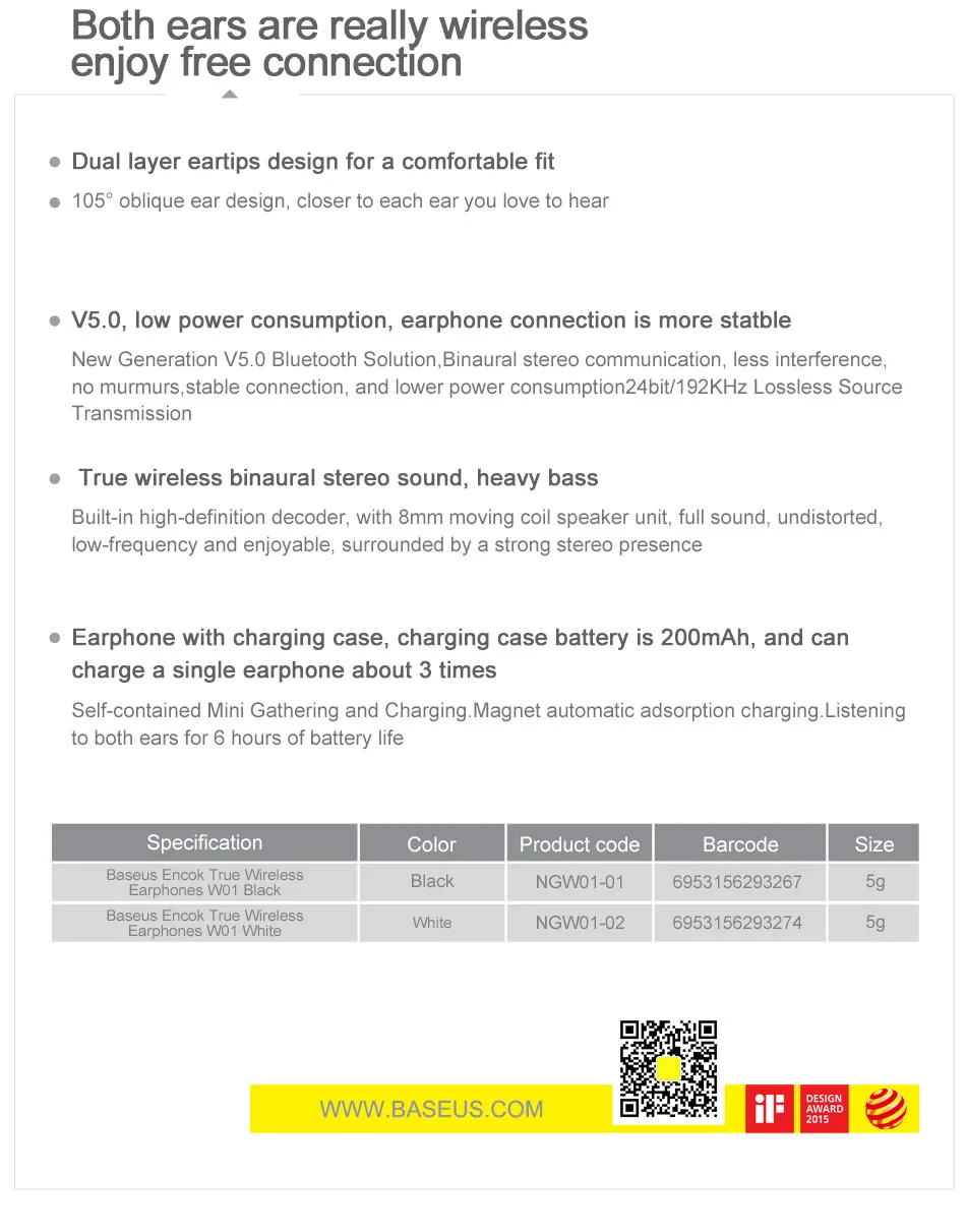 Baseus TWS Bluetooth Earphone Headset 3D Stereo Wireless Headphone Sport Bluetooth Earphone with HD Mic for Phone Fone De OuvidoBuy Now On Aliexpress