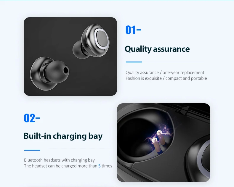 | Bluetooth Earphone with Charging Box Wireless Headset HIFI In-Ear Waterproof Sport Earbuds Gaming Headset for Smart Phone |