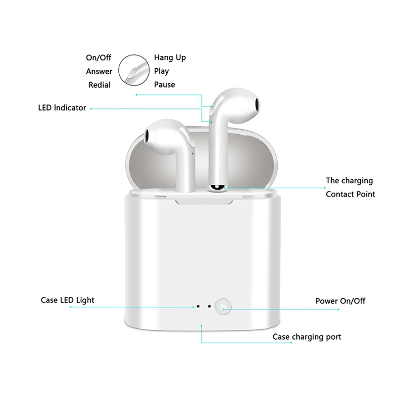| i7 i7S TWSWireless Bluetooth Earphones Headphones Stereo Bass Wireless Headset Earbuds with Mic Charging Box for All Smart phone |