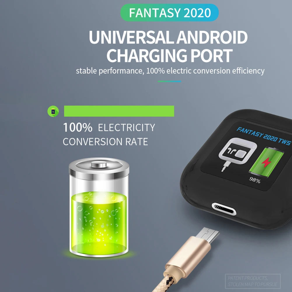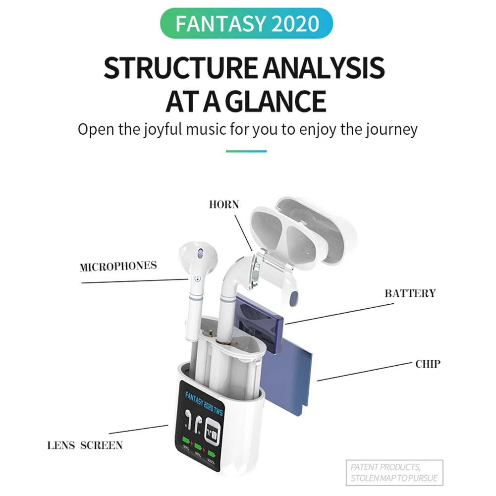 For FANTASY 2020 TWS Screen Display Bluetooth 5.0 Waterproof HiFi Stereo Touch Earphone Wireless Earphone For IOS Android