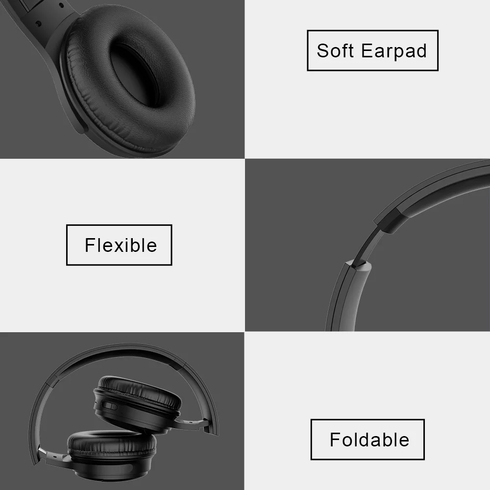 Bluetooth Headphones Wireless Headset Foldable Over-ear Noise Canceling Gaming Stereo Headphone with Mic for Phone PC Mp3 Music