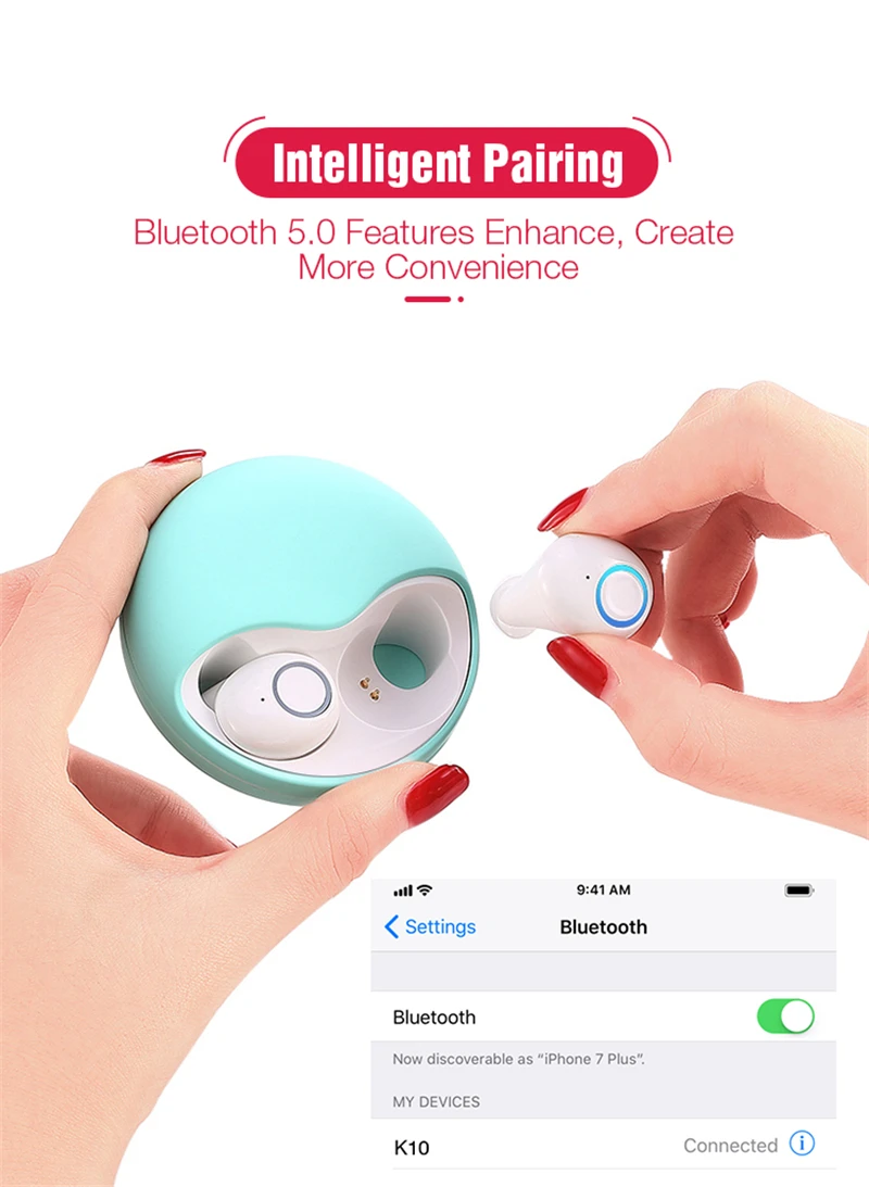 | Wireless Earphone k10 TWS wireless Bluetooth Headset 3D Stereo Sound Earbuds Auto Connect Hands free Phone Call Bass Headphones |