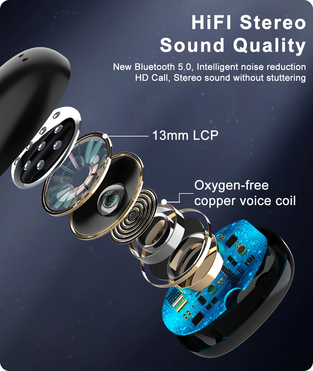 New Bluetooth 5.0, Intelligent reduction HD Call, Stereo sound wthout stuttering.